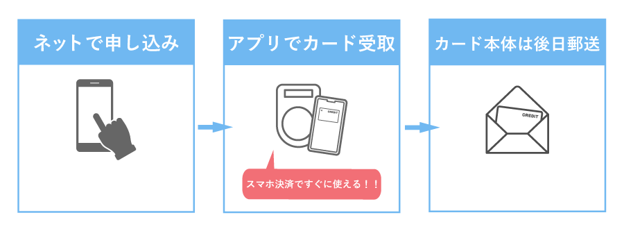 これまで「即日発行ができない」という弱みがあったJCB CARD Wですが、モバ即なら「最短5分でアプリでカード番号が確認できる=ネットショップやApple Payでクレジットカードが届く前からお買い物できる」ようになりました!