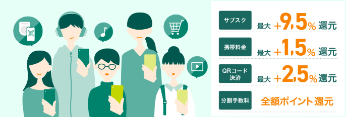 - ・商業施設内にある店舗など、 一部ポイント加算対象とならない店舗および指定のポイント還元率にならない場合があります。
