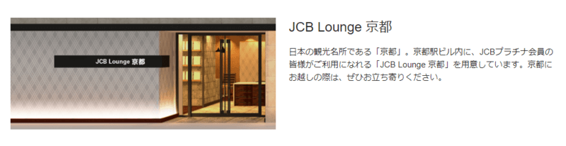 - 会員専用のJCB Lounge 京都駅や有名テーマパークラウンジが使える